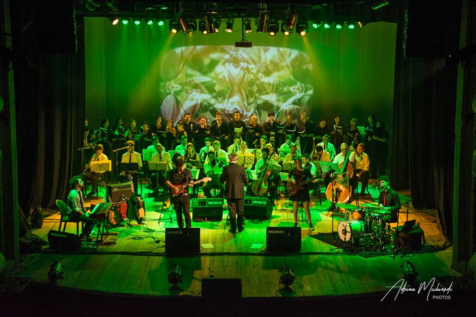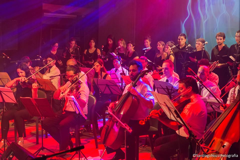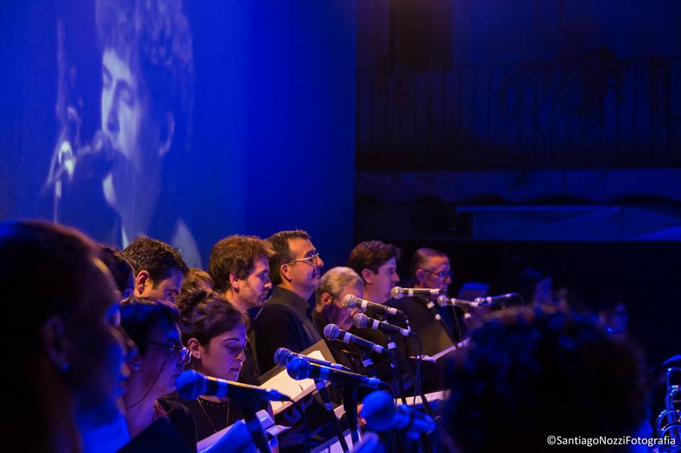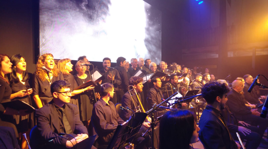 Primer plano de Coral Somisa y la orquesta |