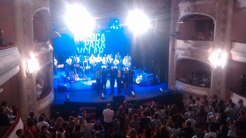 | Primer plano de los músicos | Vista desde la platea |